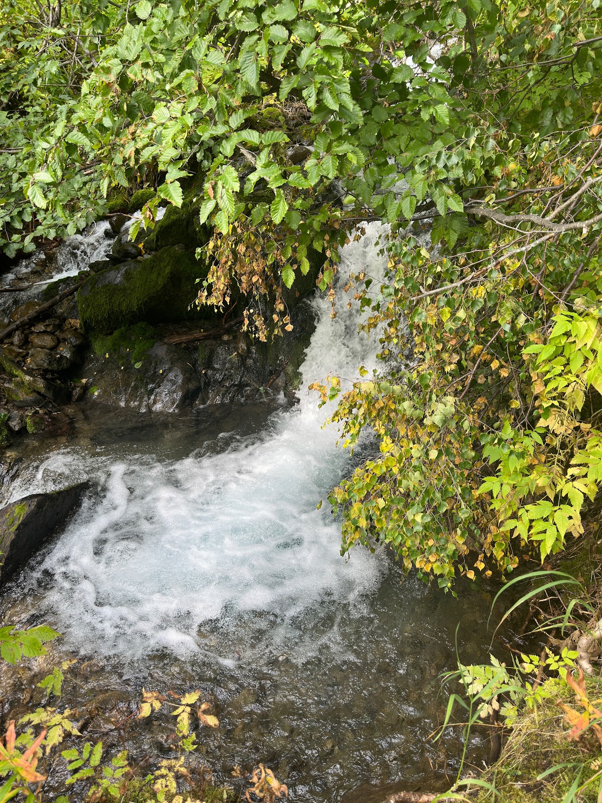 Saturday, our last p-day! Carolee was packing (I have not started yet. I am in denial that we are really leaving) and we spent some time writing talks for speaking in the YSA group in the North Anchorage Stake. So we decided to have one last adventure so we drove up North to Arctic Valley to see the leaves. After we were going to Falls Creek down Turnagain Arm to the south of Anchorage, to hike the trail!